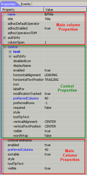 When setting Grid’s column controls properties, note that within the column main properties, you will find a property named ‘control’. This ‘control’ can be expanded to reveal a group of sub-properties. Both types of properties set the way the column will be displayed. However, note the difference behavior impact between ‘main’ properties and ‘control’ properties which have similar name.