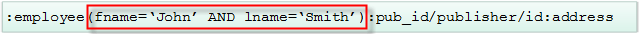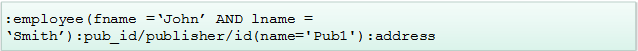 Since it is possible that two different employees named John Smith will be in more than one publisher, this path might return several addresses. The path can be modified as follows: