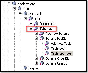JDBC paths can be simplified by defining a logical schema in the ASC (Amdocs System Configuration) repository by the Core/JDBC/Schema node. The schema defines relation names and property names.
