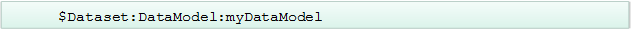 The $Dataset context type, represented by a java object which is an INamedCollection, contains a collection that can be accessed by getDataModelByName(“myDataModel”).