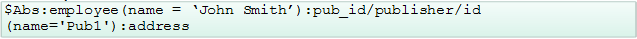 This path selects a single item, even though it is possible to have more than one person named John Smith (since publisher name is unique for each employee).