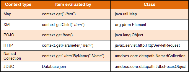 The context type JdbcFocusObject ( amdocs.core.JdbcFocusObject) can identify JDBC data.