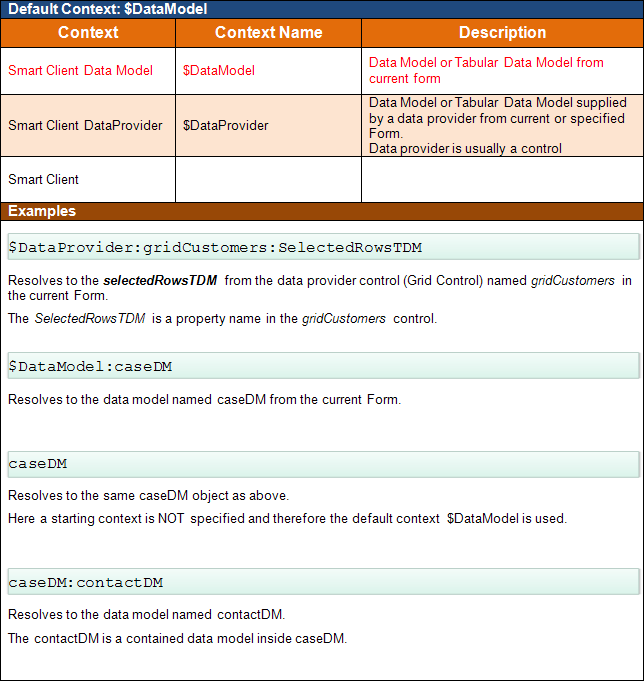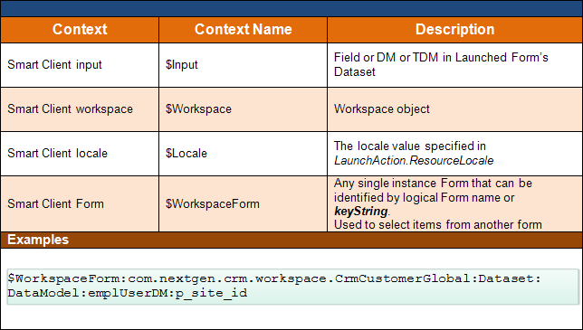 • Workspace                           is the starting context and it specifies a Workspace context type