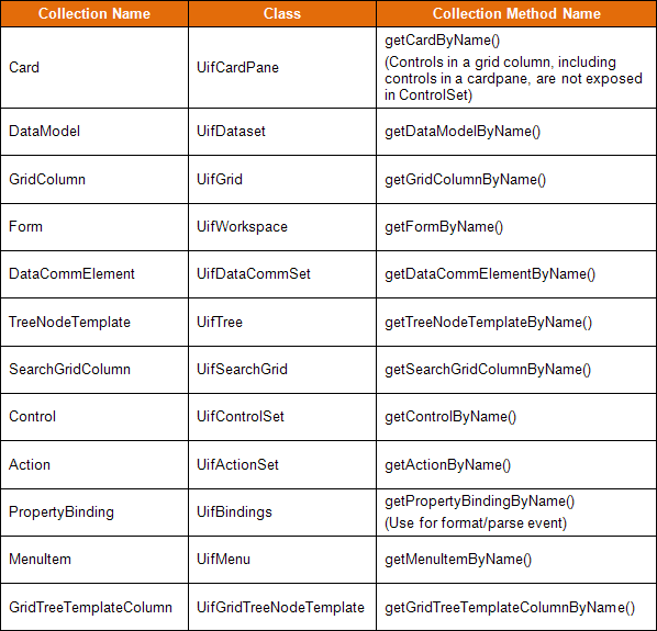 The followings Smart Client runtime elements are implemented as Named Collections: