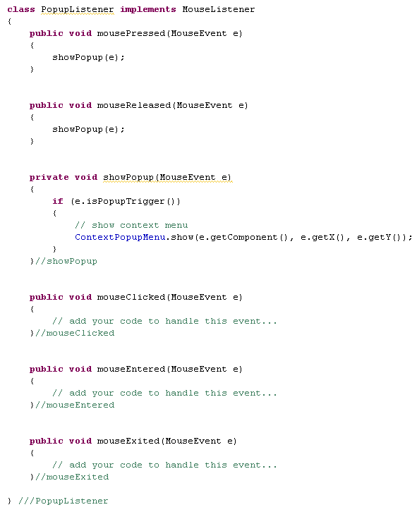 2. Define a Popup Listener object (form inner class).