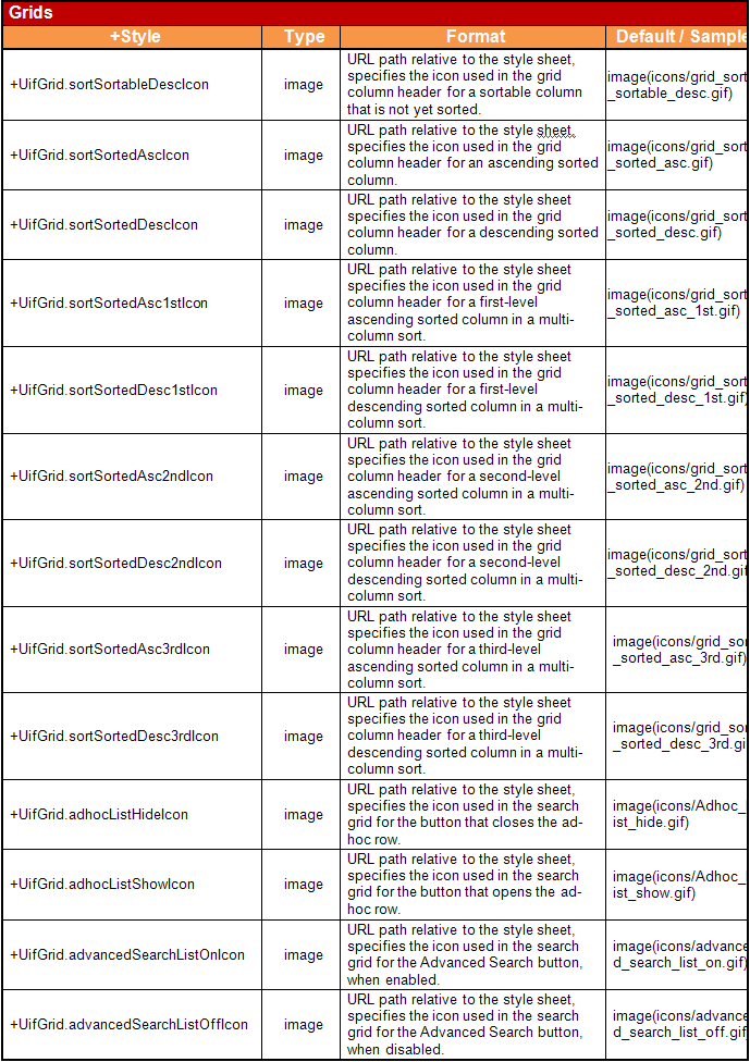- The controls used to render cells in the grid cells can be styled via the standard styles with exception of overlayIcon.