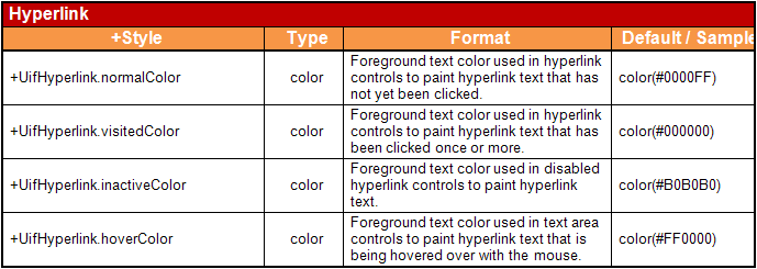 Control’s style can be changed at runtime using the method UifControl.setStyle(String style). This method is used to set a named style for the control. Once invoked, the control appearance is adjusted according styles defined in the style sheet