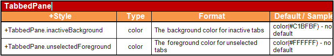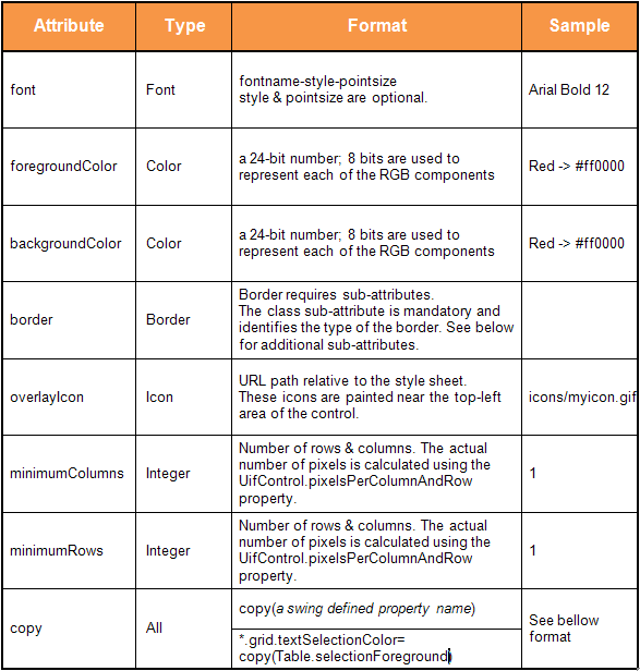 - Some of the attributes may not work depending on the limitation of the underlying Swing Control’s UI Delegate implementation