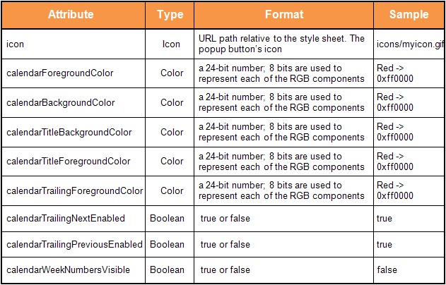 - Swing attribute names are defined by Swing’s Look And Feel implementations and are not listed here