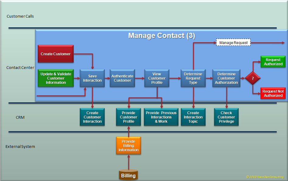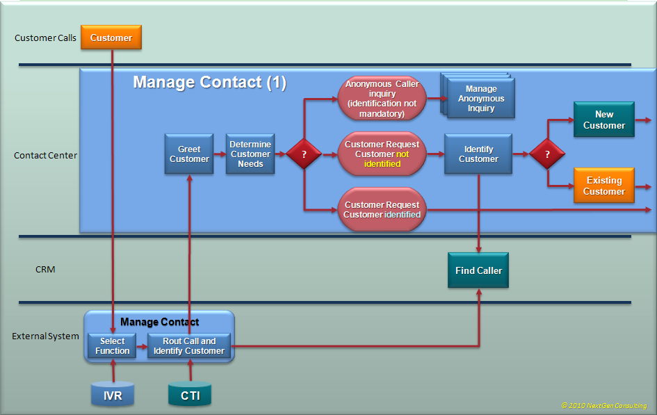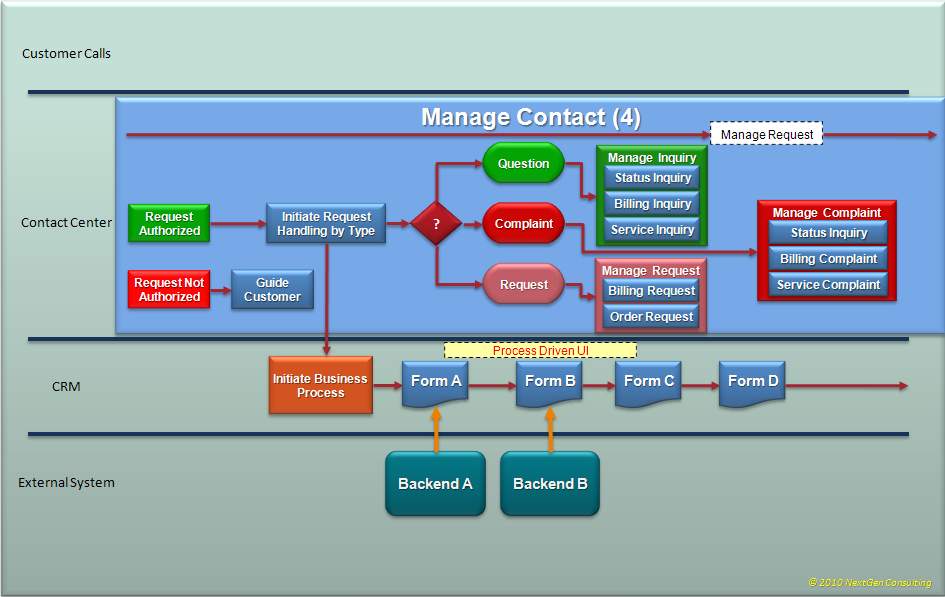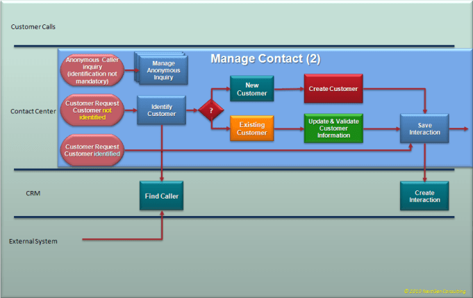 From business process perspective, any customer call starts with the ‘Customer Interaction Manager’ to handle the call (interaction).