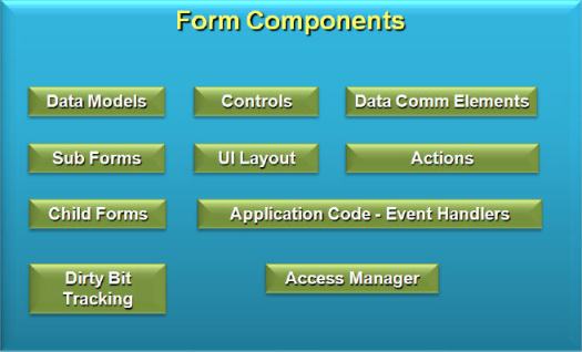 A form is a UI (user interface) component used to view and process user data based on business needs. The main constituents of a form are User Interface controls, user data and logic used for interaction of the above components.